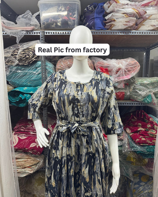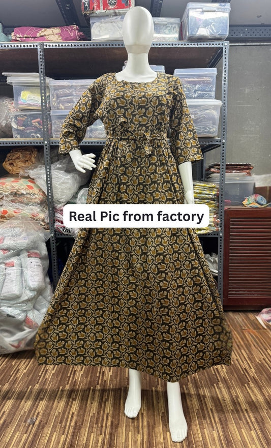 Tulip Flower - Brown - Maternity Kurti with Feeding Zips - Cotton Flex - Thicker Fabric