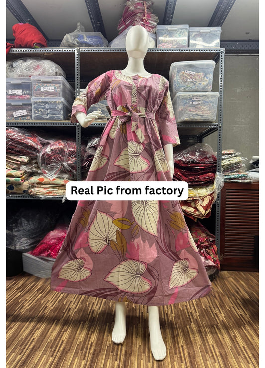 Lotus Pink - Maternity Kurti with Feeding Zips - Cotton Flex - Thicker Fabric