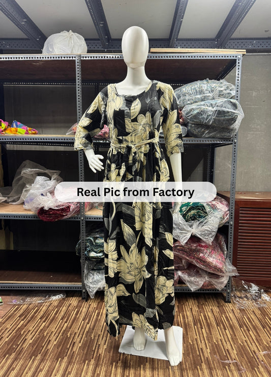 Lily Flower Black - Maternity Kurti with Feeding Zips - Cotton Flex - Thicker Fabric