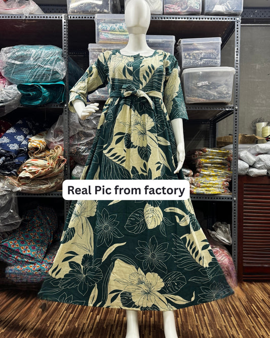 Lily Flower Sea Green - Maternity Kurti with Feeding Zips - Cotton Flex - Thicker Fabric