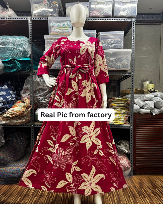 Lily Flower Pink - Maternity Kurti with Feeding Zips - Cotton Flex - Thicker Fabric