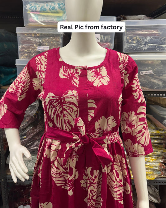 Ajrakh Sunflower - Maroon - Maternity Kurti with Feeding Zips - Cotton Flex - Thicker Fabric