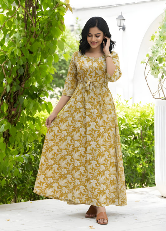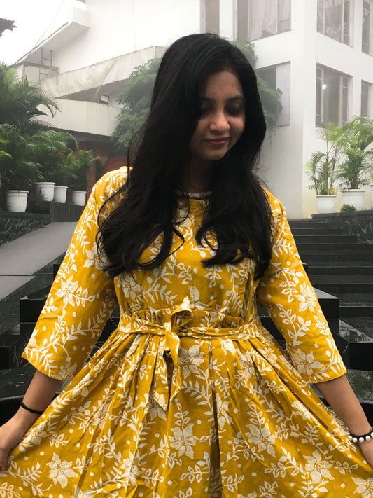 Dessert Yellow Flower Bandhani - Maternity Kurti with Feeding Zips - Soft Rayon