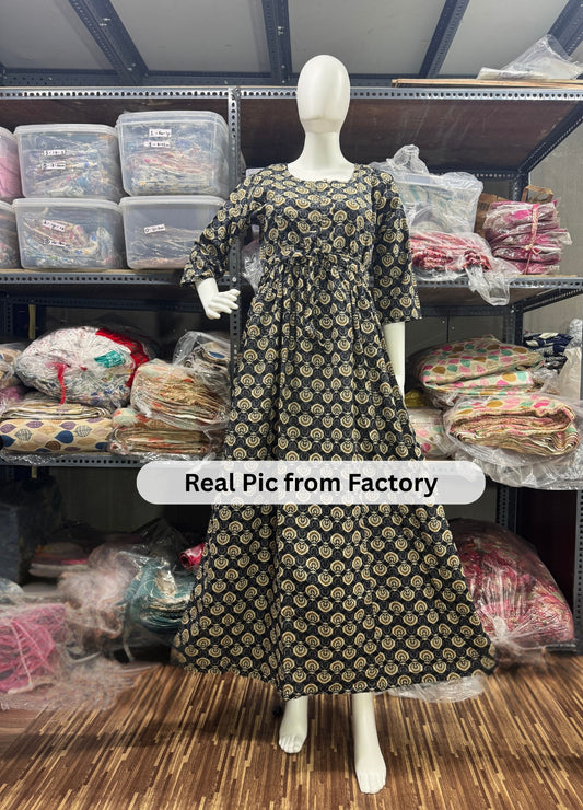 Sunflower - Black & Cream - Maternity Kurti with Feeding Zips - Cotton Flex - Thicker Fabric
