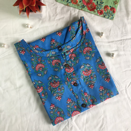 Pure Cotton - Short Kurti - Dno - 38 - Sky Blue
