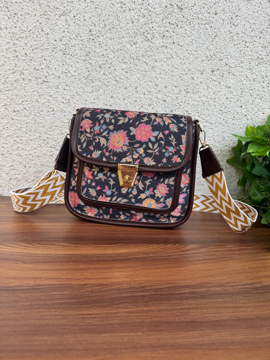 Feista - Black Garden - 4 Zips - pockets sling bag with Aztec Belt