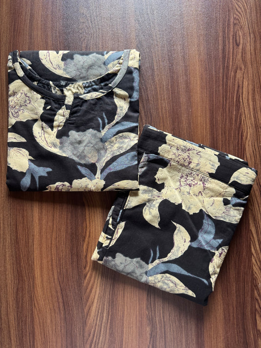 Knee Length - Black Flower - Cord Set - Pure Cotton