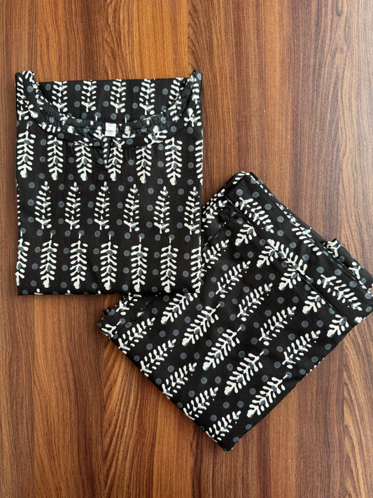 Knee Length - Flower & Leafs - Black - Cord Sets - Pure Cotton