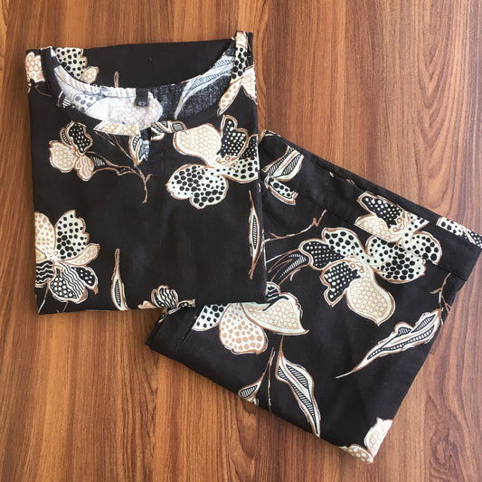 Flower & Leaf - Black - Cord Set - Pure Cotton