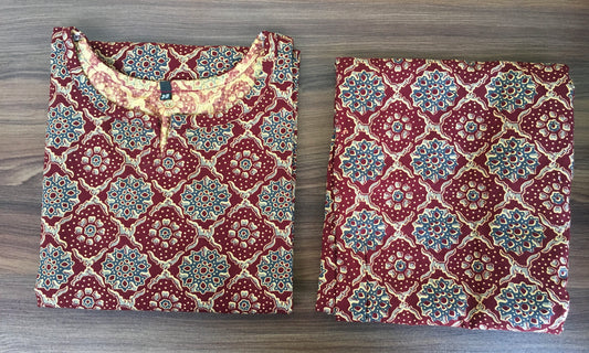 Ajrakh Maroon flower - Cord Set - Pure Cotton