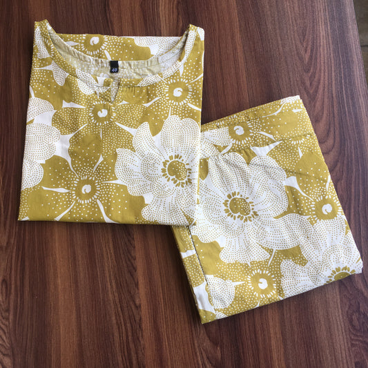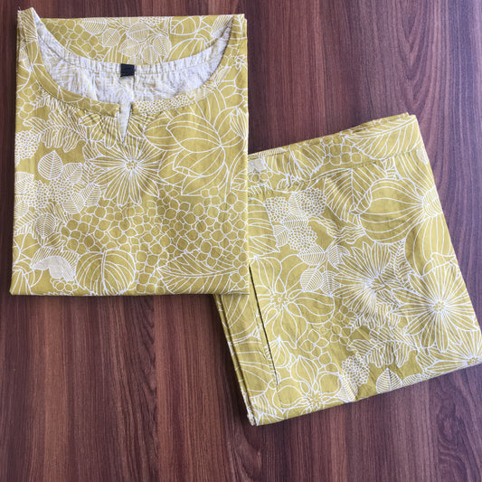 Sketch Print - Pista Flower - Cord Set - Pure Cotton