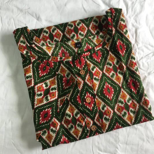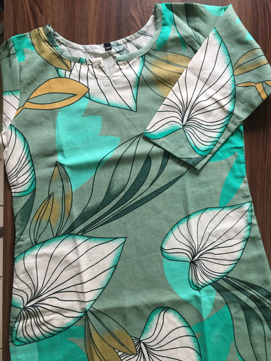 4 tone Print - Green - Cord Set - White Pant - Pure Cotton