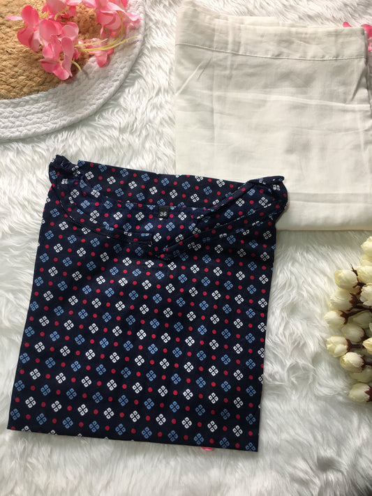Blue Grey Patola - Cord Set - White Pant - Pure Cotton