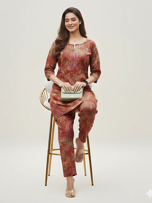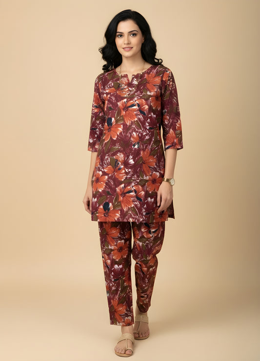 Floral Wine - Cord Set - Soft Rayon