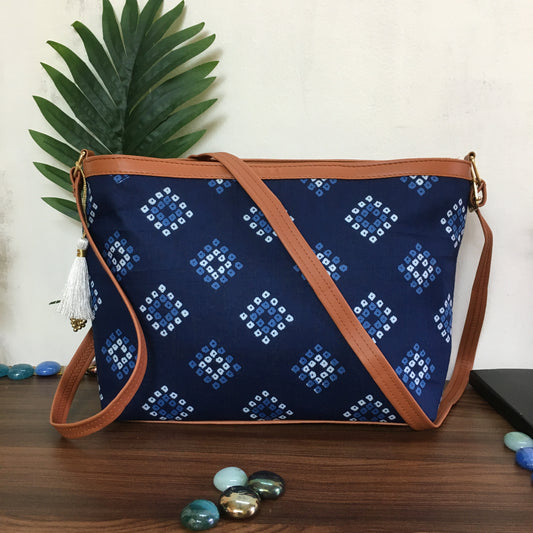 Minsk - 3 zip- Big size - Sling Bag - Blue Square Bandhani