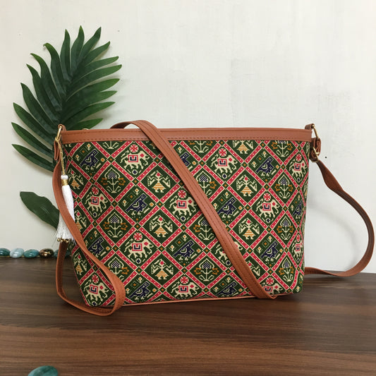 Minsk - 3 zip- Big size - Sling Bag - Square Patola - Green