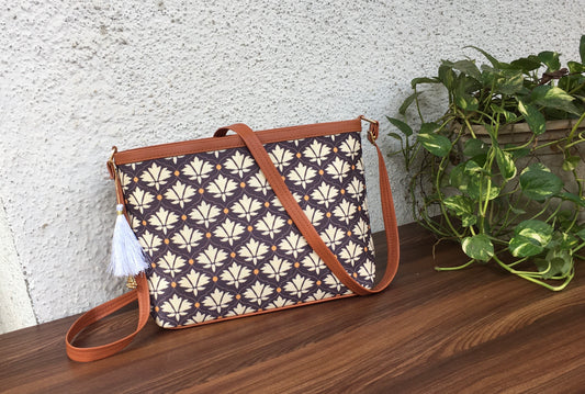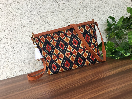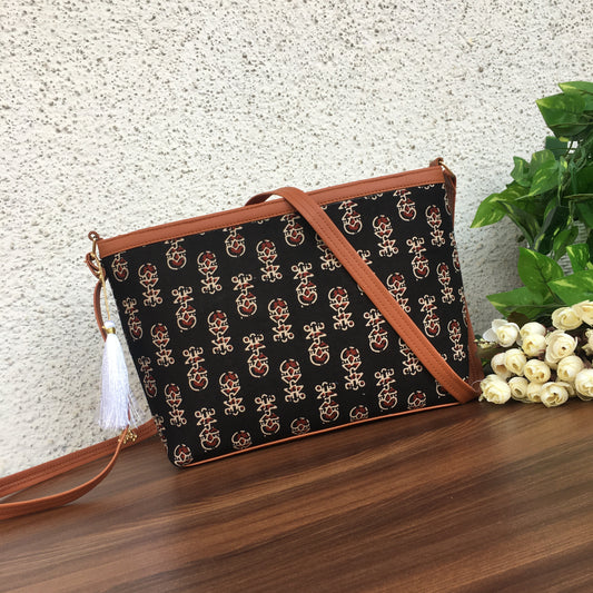Minsk - 3 zip- Big size - Sling Bag - Maroon Black Ajrakh