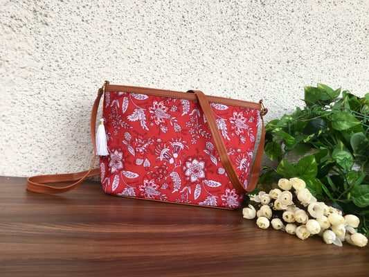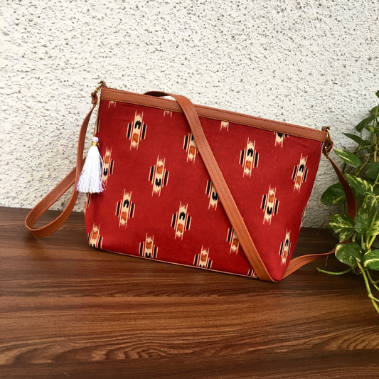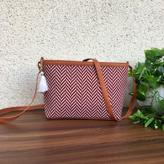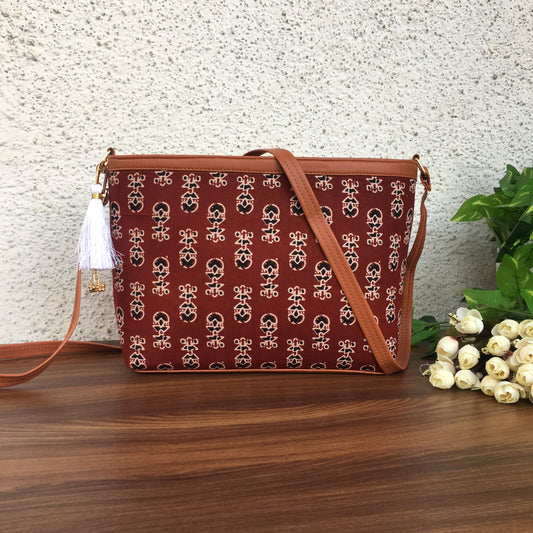 Minsk - 3 zip- Big size - Sling Bag - Ajrakh Maroon