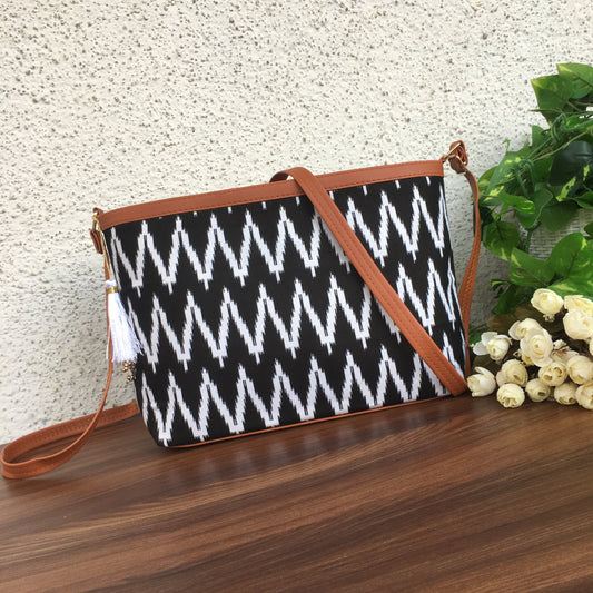 Minsk - 3 zip- Big size - Sling Bag - Black ZigZag