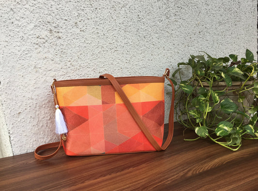 Minsk - 3 zip- Big size - Sling Bag - Orange Yellow Abstract