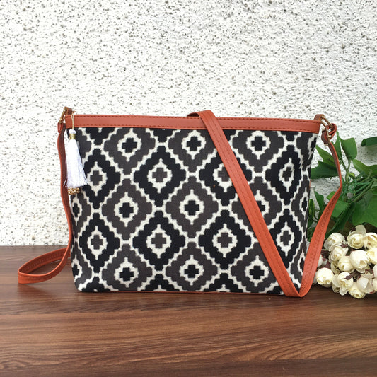 Minsk - 3 zip- Big size - Sling Bag - Black Ajrakh
