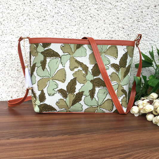 Minsk - 3 zip- Big size - Sling Bag - Flower & Leafs - Green