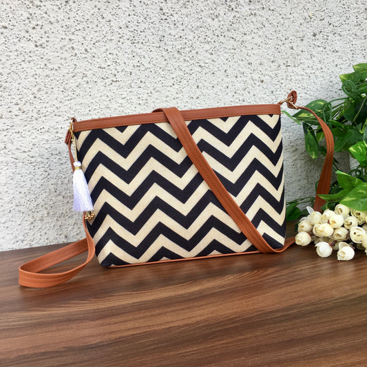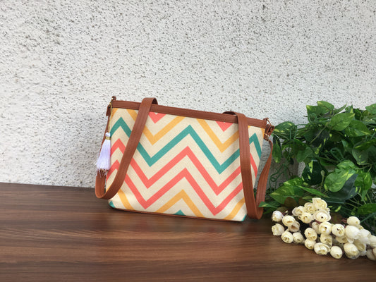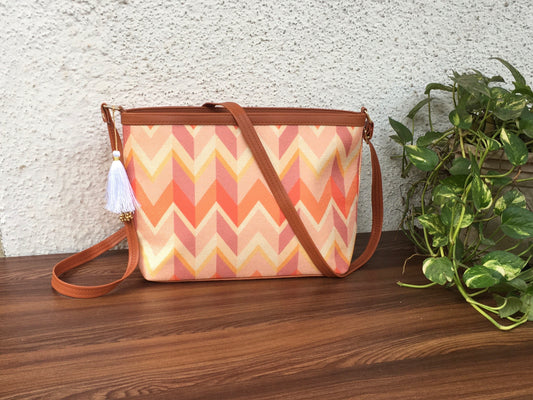 Minsk - 3 zip- Big size - Sling Bag - Orange Cream ZigZag