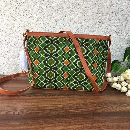Minsk - 3 zip- Big size - Sling Bag - Green Yellow Patola