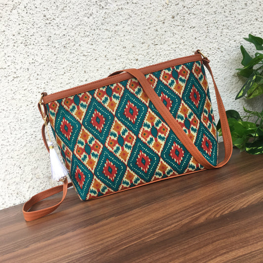 Minsk - 3 zip- Big size - Sling Bag - 4 Tone Firozi