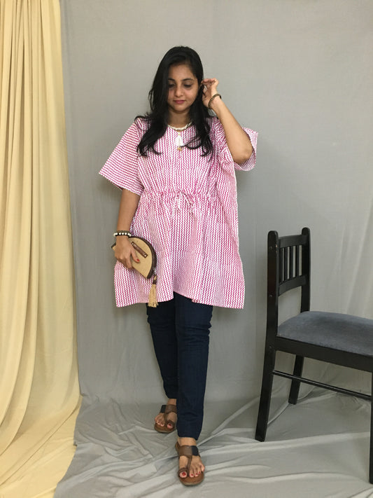 Short Kaftan - Pink Stripes - Pure Cotton - Trendy Short Kaftan Tops