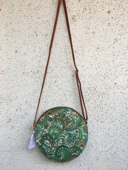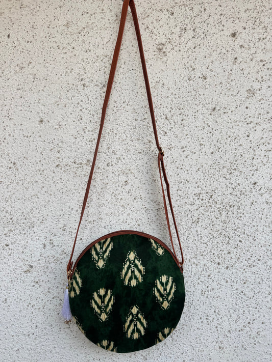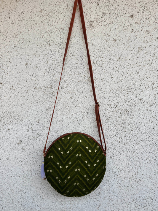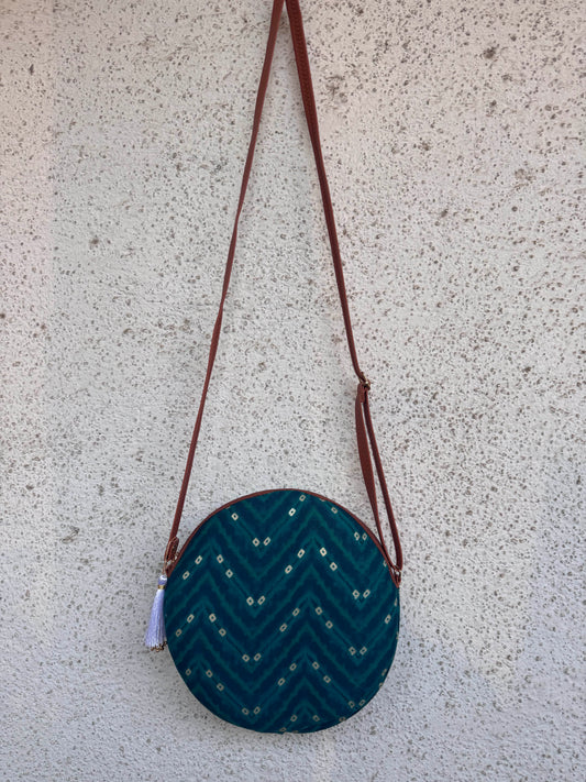 Peacock Blue Bandhani Zigzag - Cute Round Sling bag