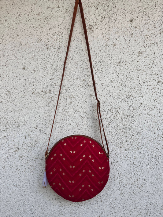 Pink Bandhani Zigzag - Cute Round Sling bag