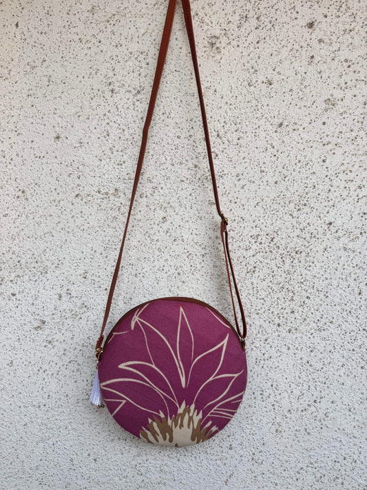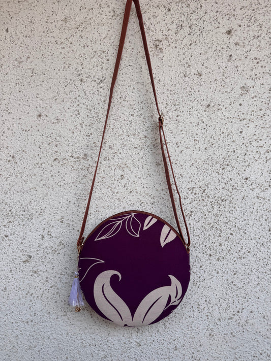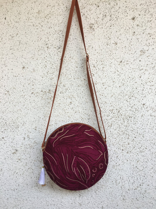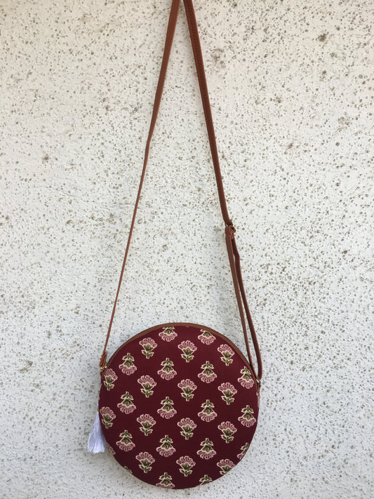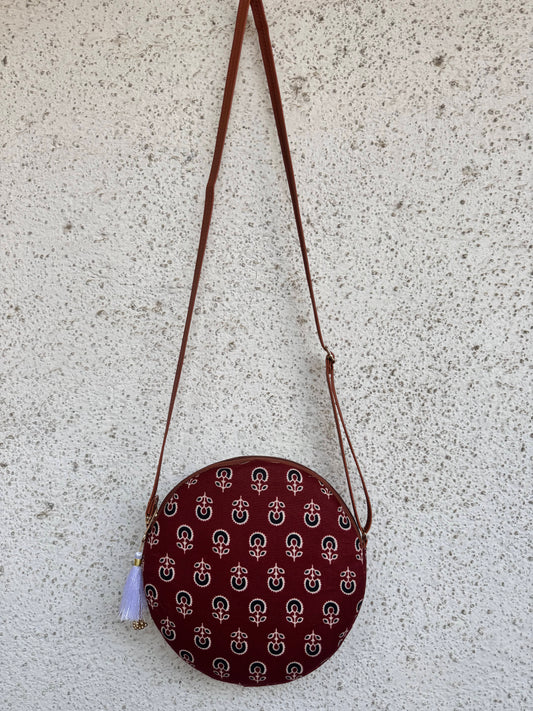 Ajrakh Maroon Sunflower - Cute Round Sling bag