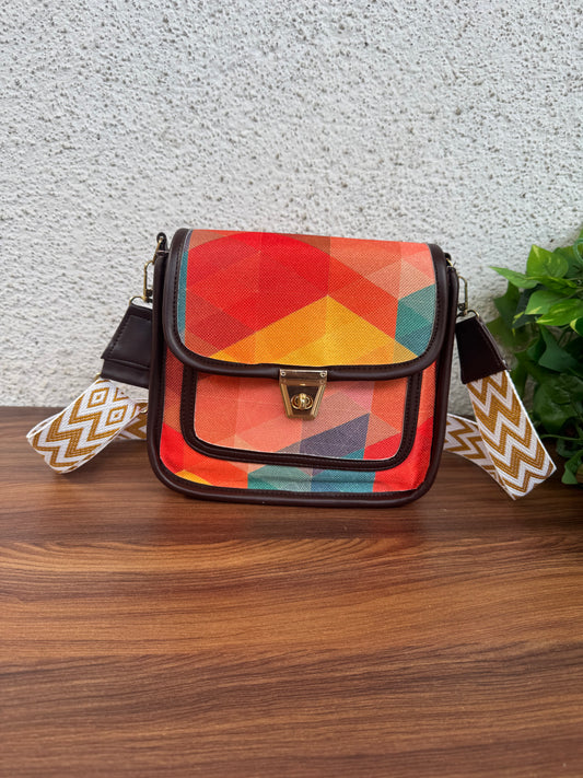 Feista - Orange Abstract - 4 Zips - pockets sling bag with Aztec Belt