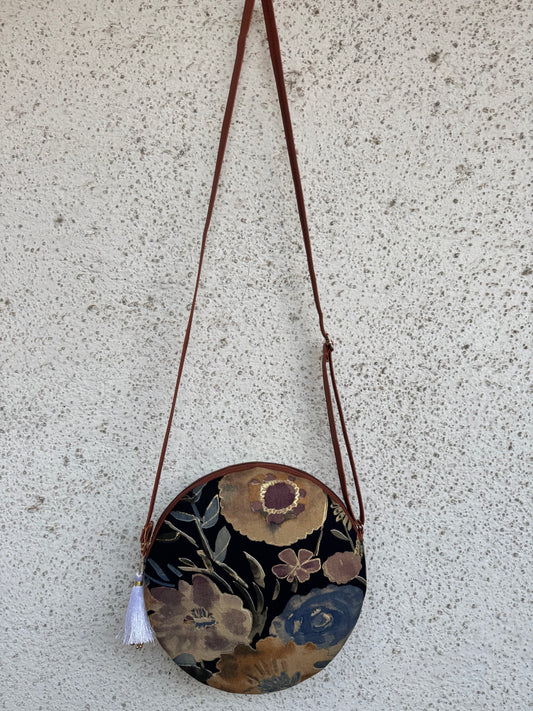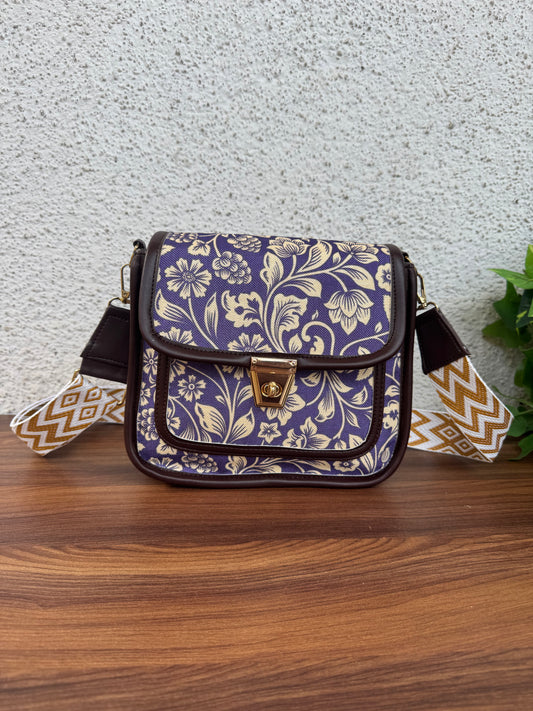 Feista - Purple Flower - 4 Zips - pockets sling bag with Aztec Belt