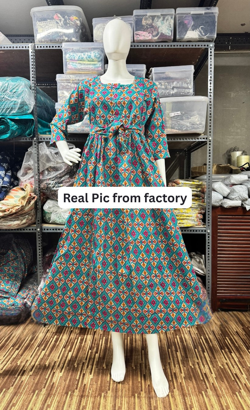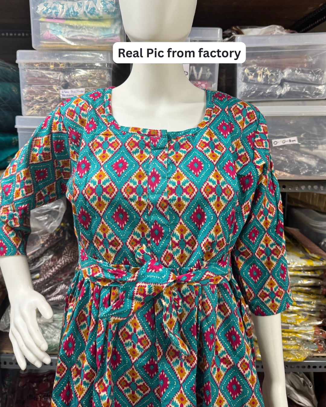 4 tone Firozi - Maternity Kurti with Feeding Zips - Cotton Flex - Thicker Fabric