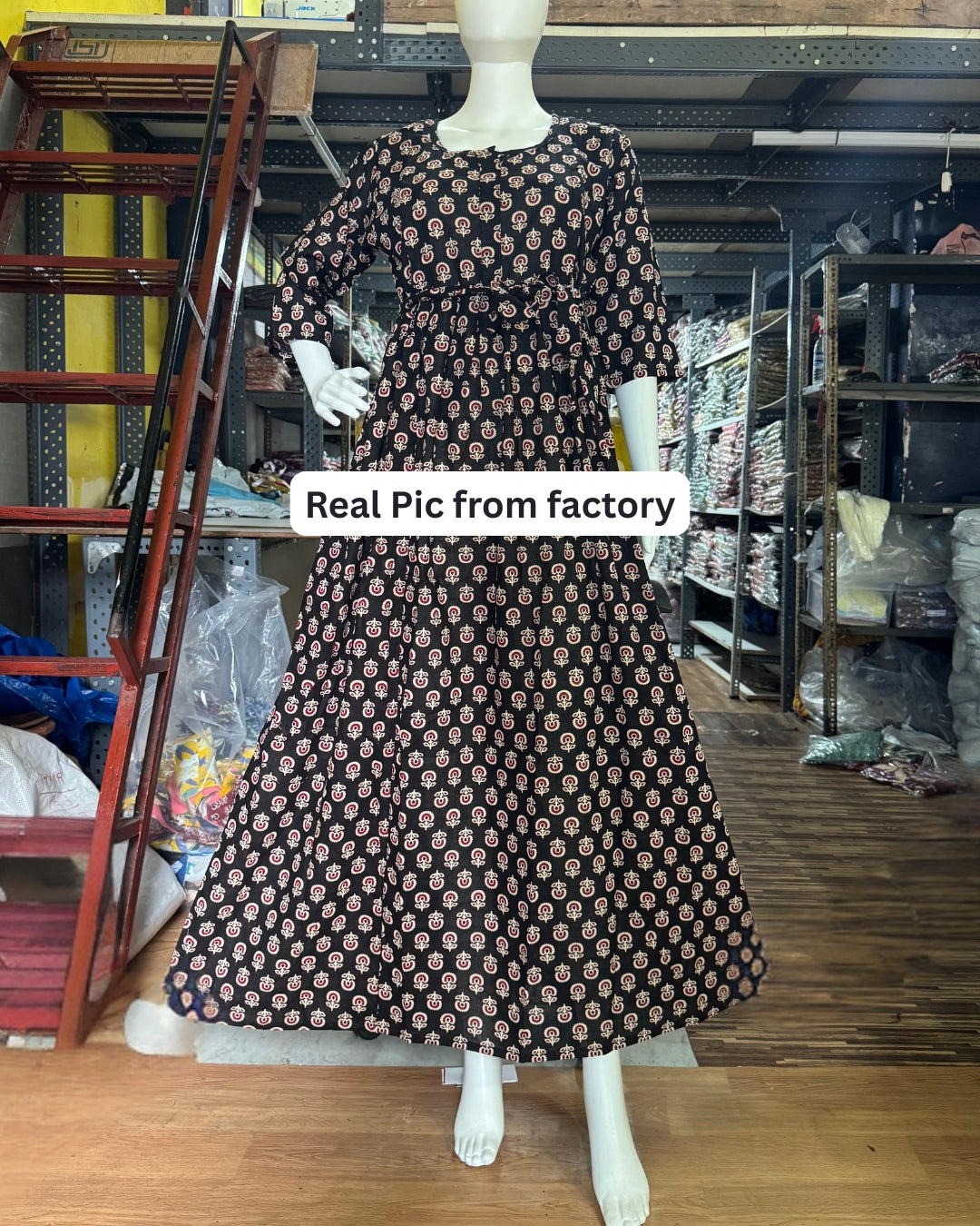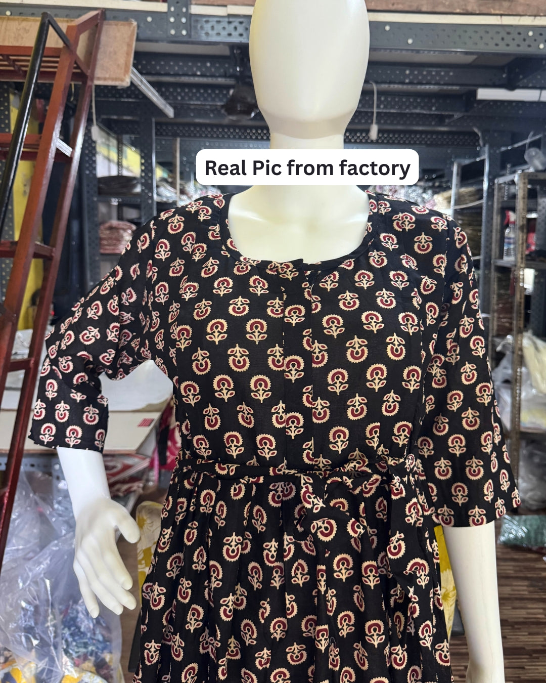 Ajrakh Sunflower Black - Maternity Kurti with Feeding Zips - Cotton Flex - Thicker Fabric