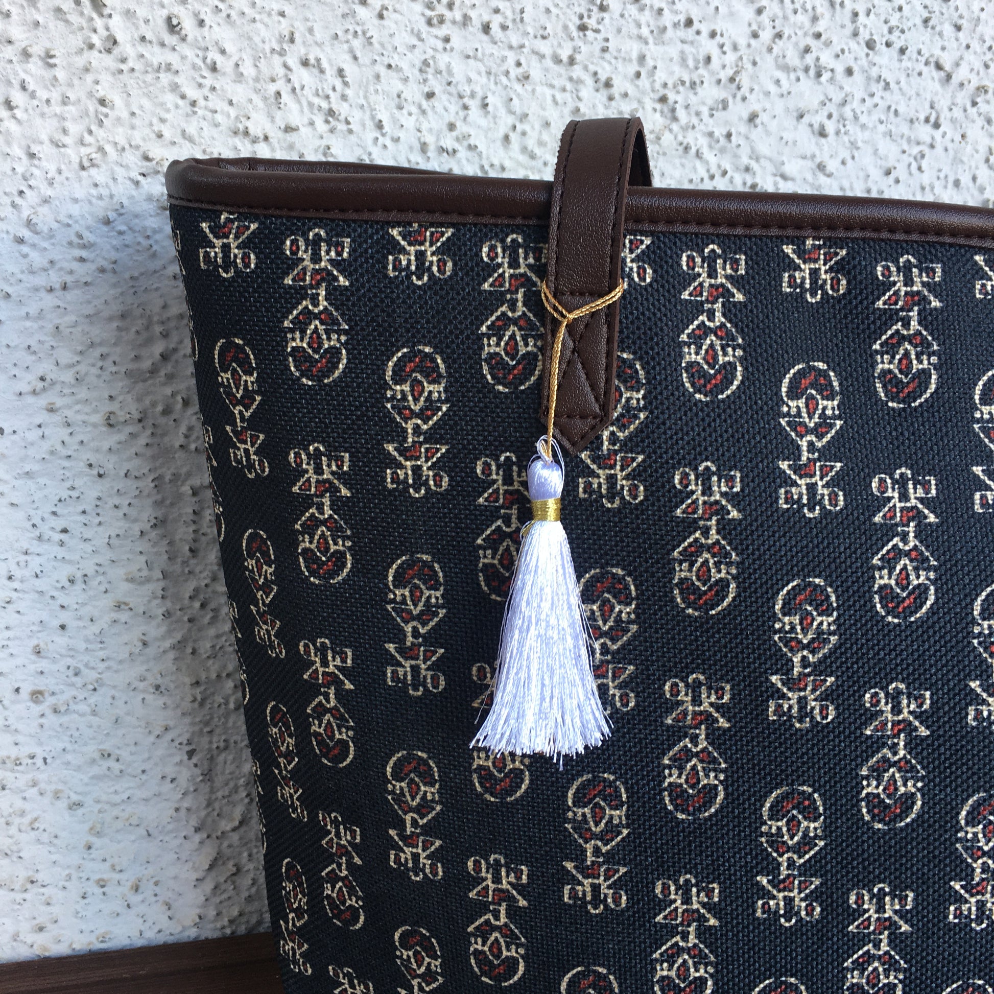 Material - These is a stiff bag which can stand on its own, Printed Fabric is Cotton, Handles & Bottom base are made of Vegan Leather, Inner linner is Cotton / polyster.