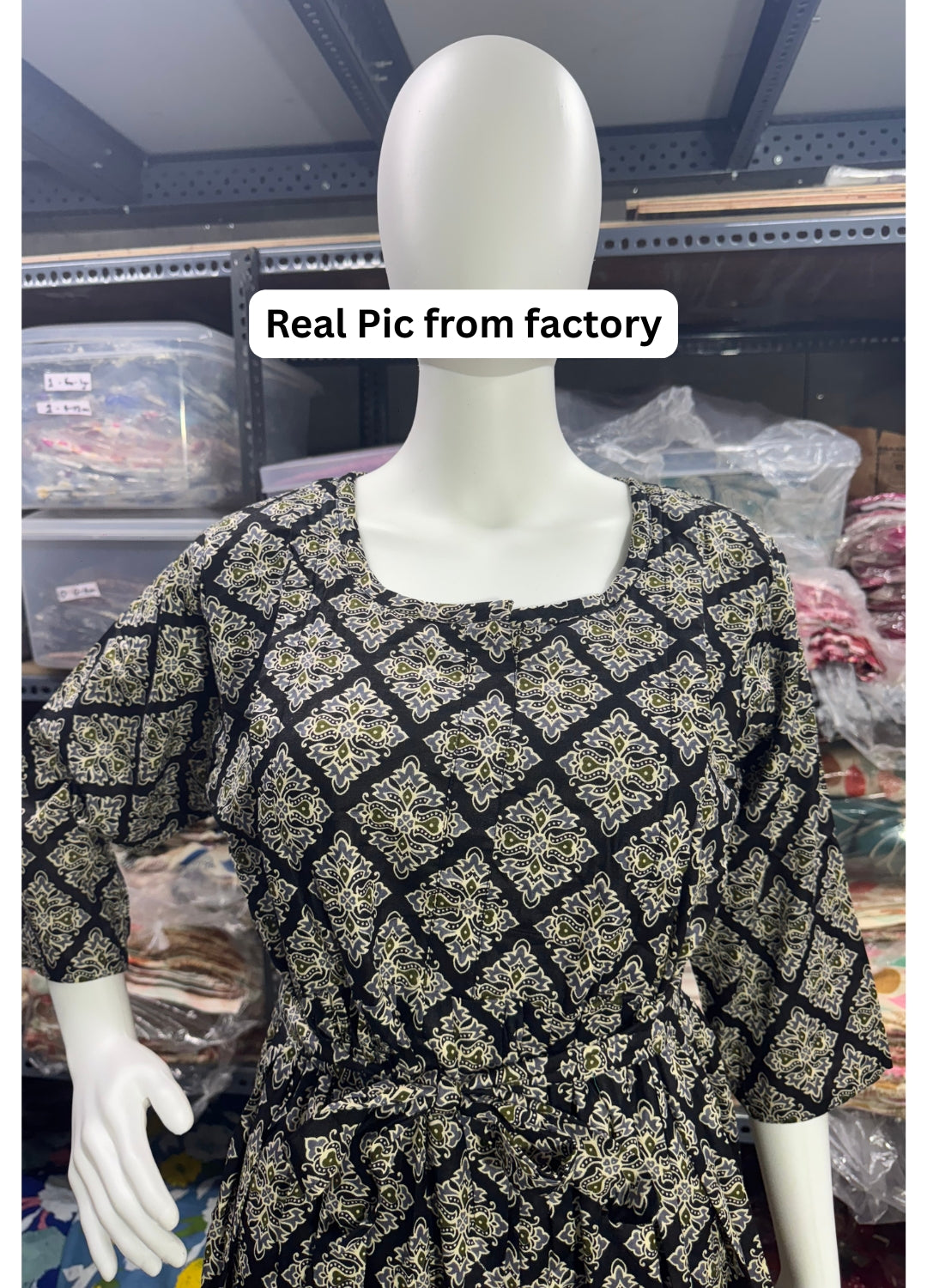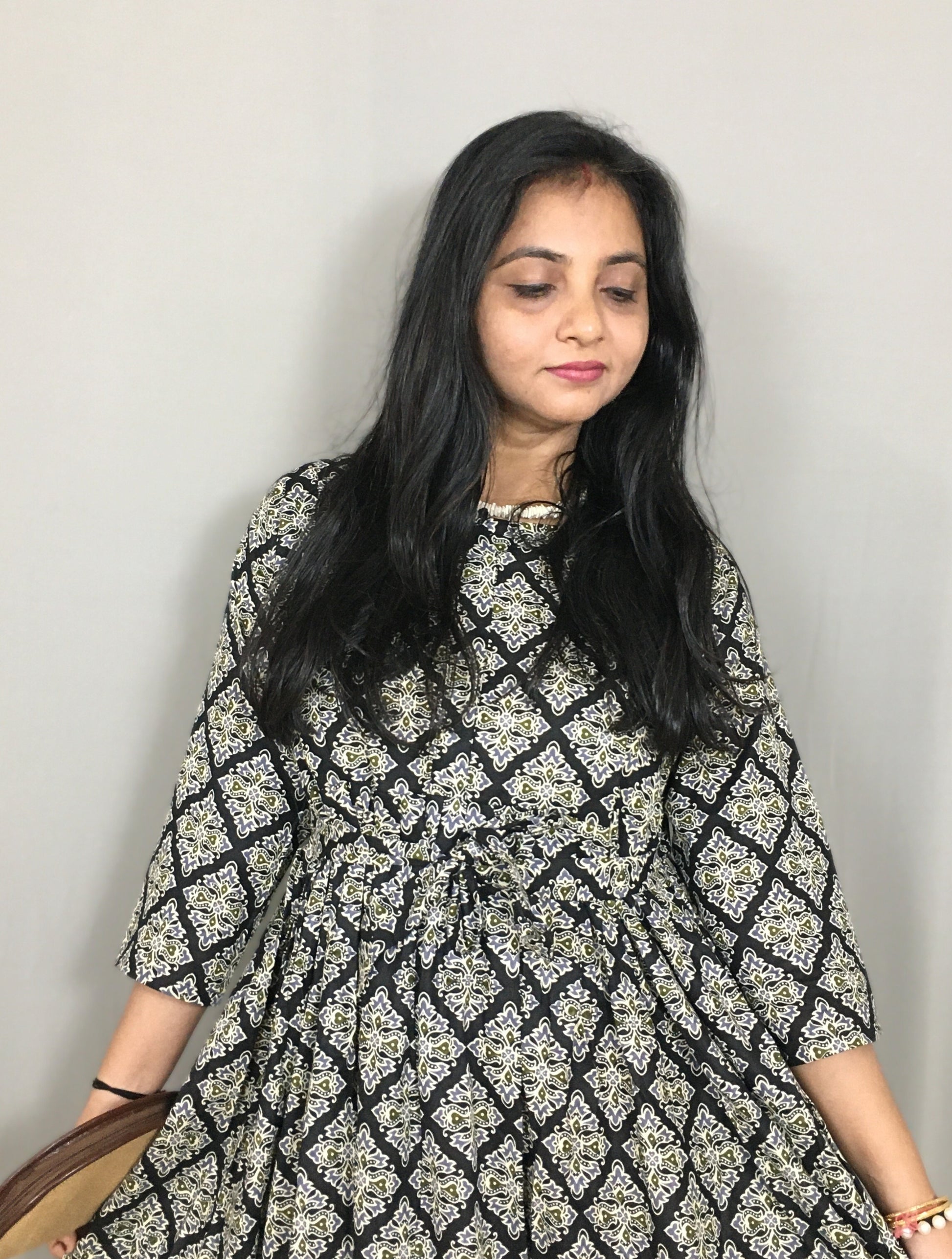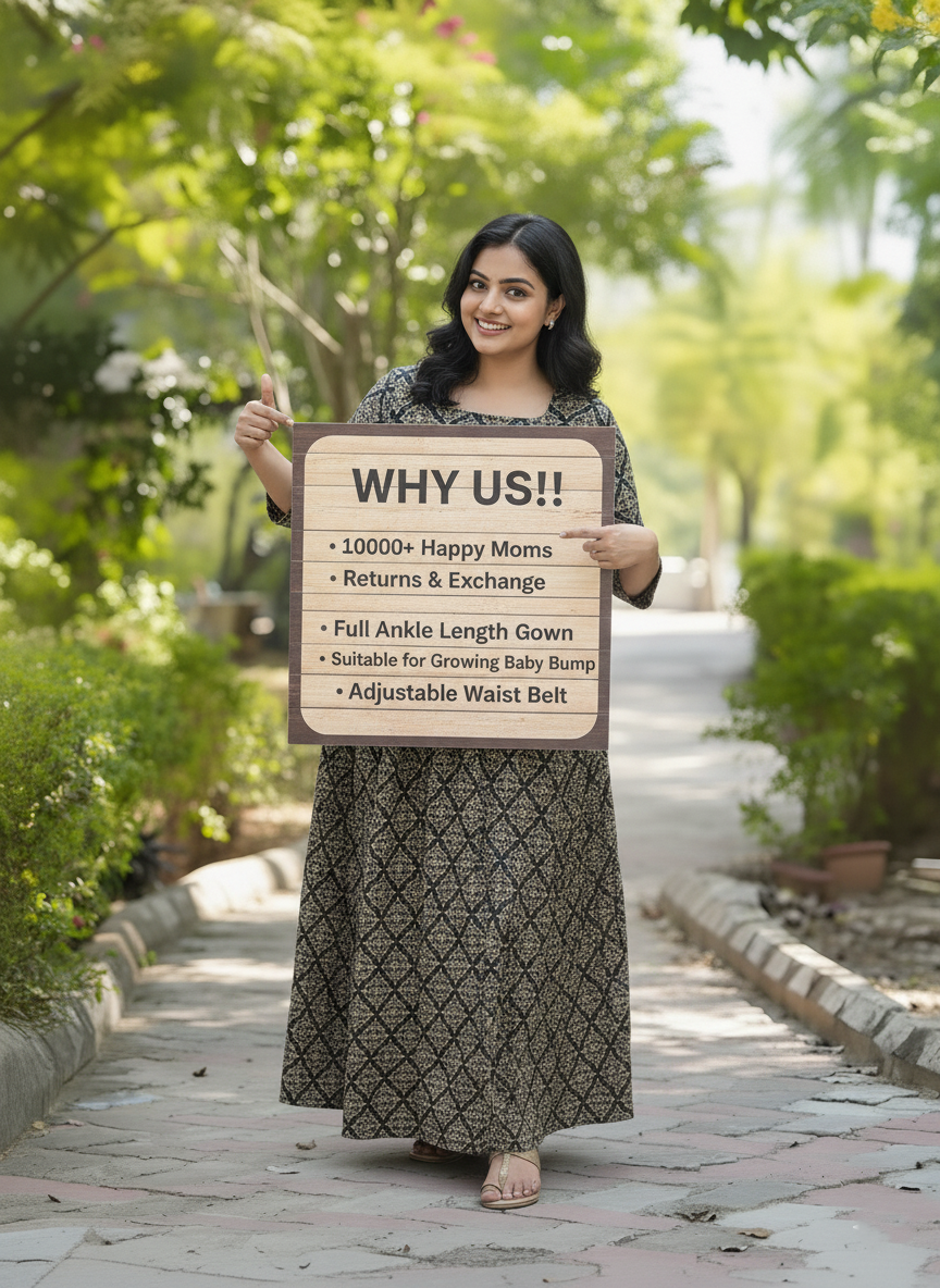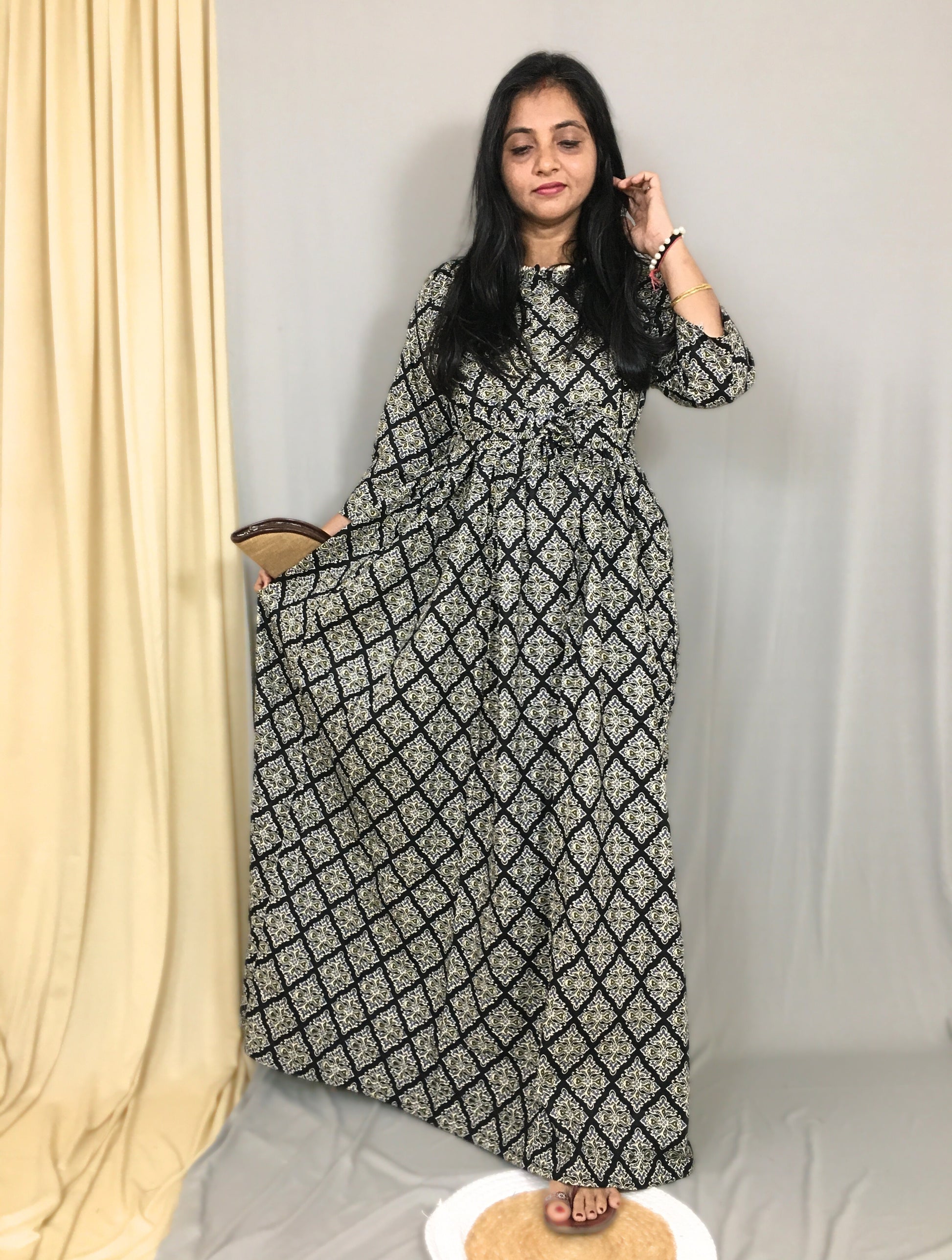 Black Dessert Flower - Maternity Kurti with Feeding Zips - Cotton Flex - Thicker Fabric