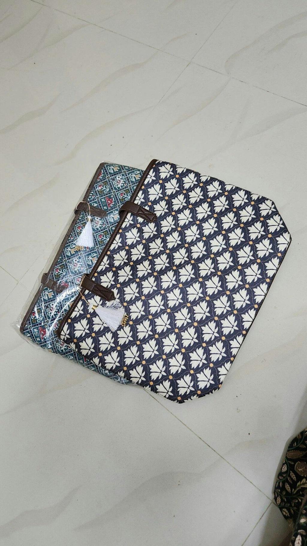 Material - These is a stiff bag which can stand on its own, Printed Fabric is Cotton, Handles & Bottom base are made of Vegan Leather, Inner linner is Cotton / polyster.