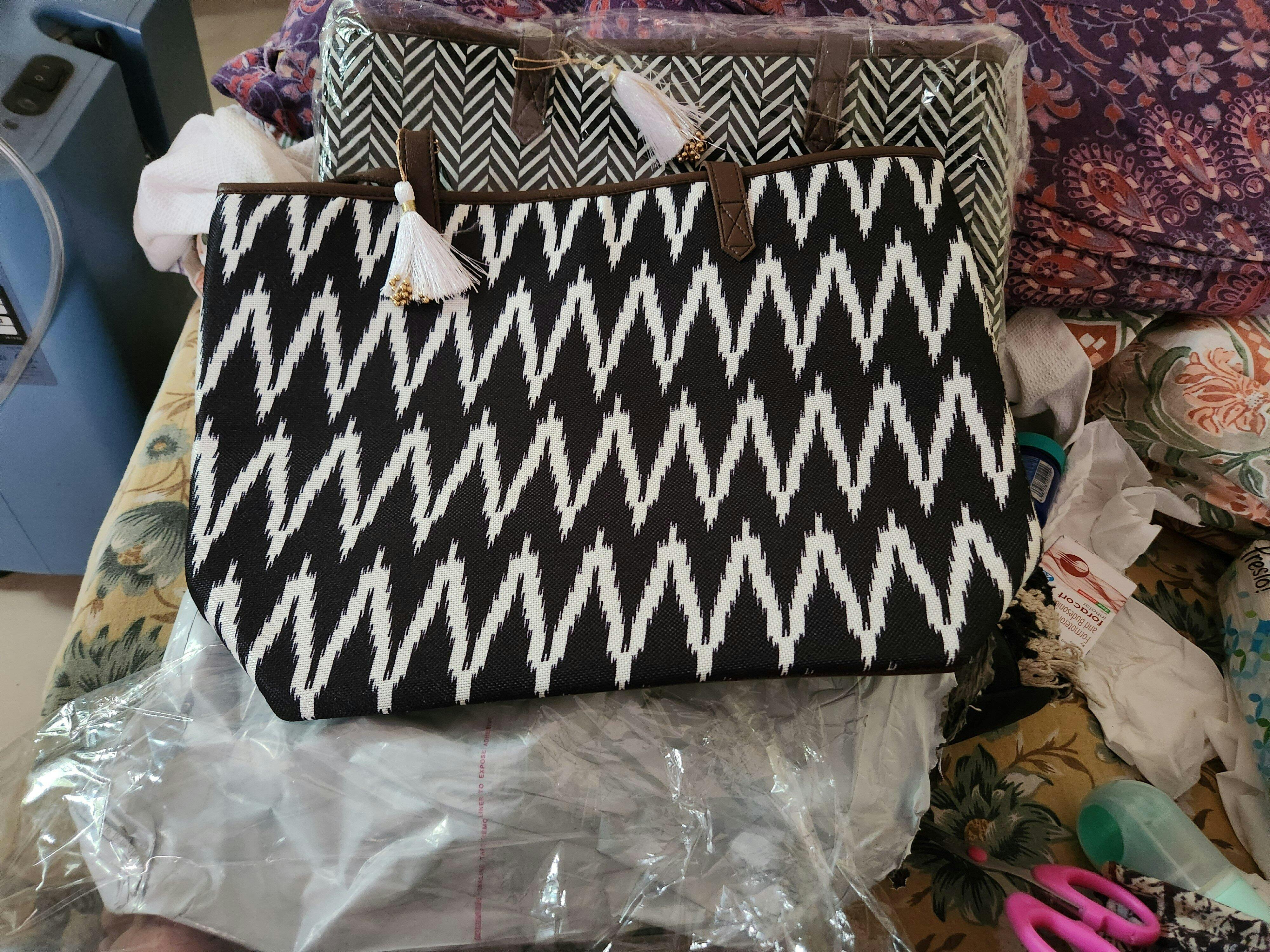 Material - These is a stiff bag which can stand on its own, Printed Fabric is Cotton, Handles & Bottom base are made of Vegan Leather, Inner linner is Cotton / polyster.