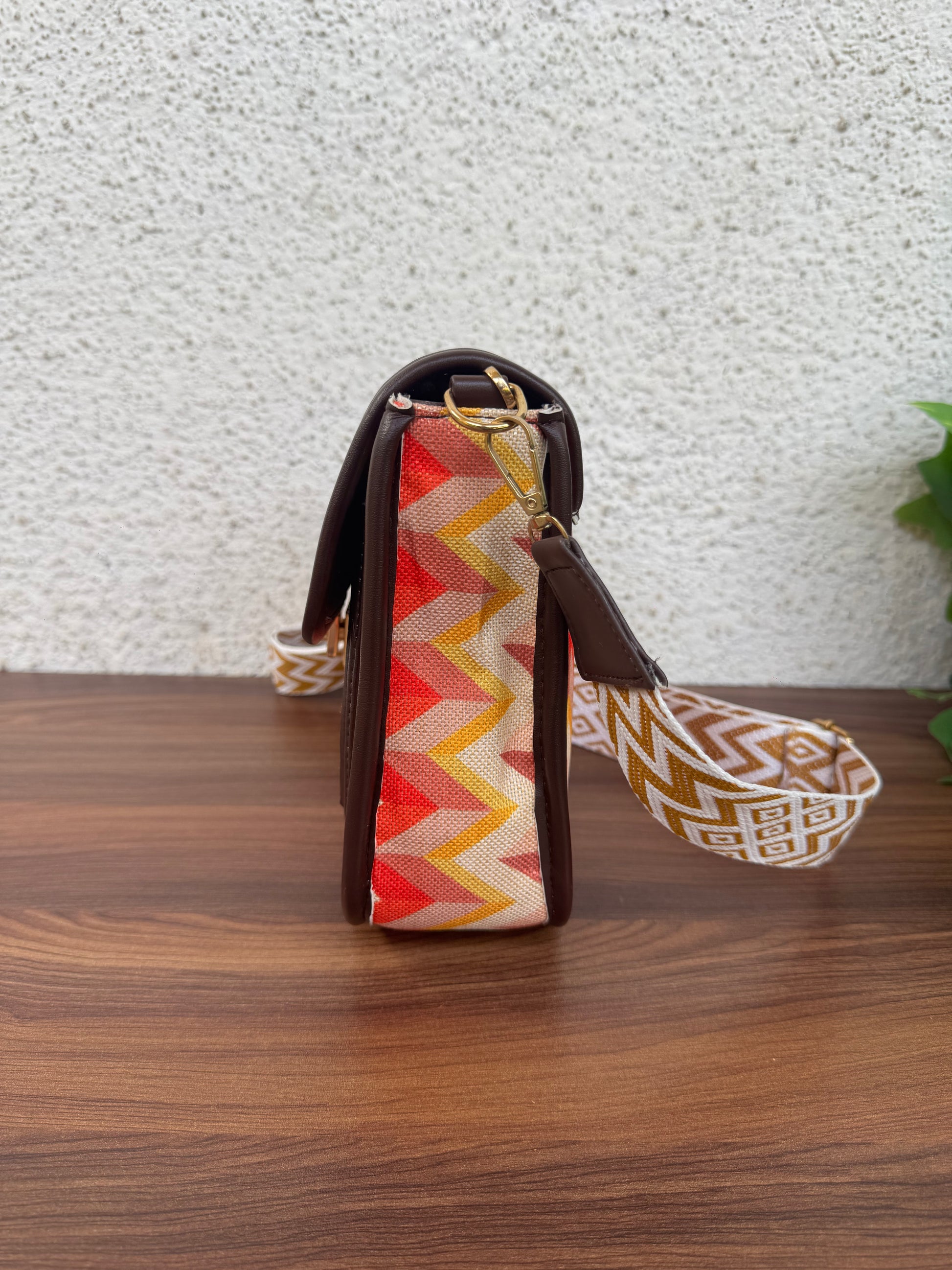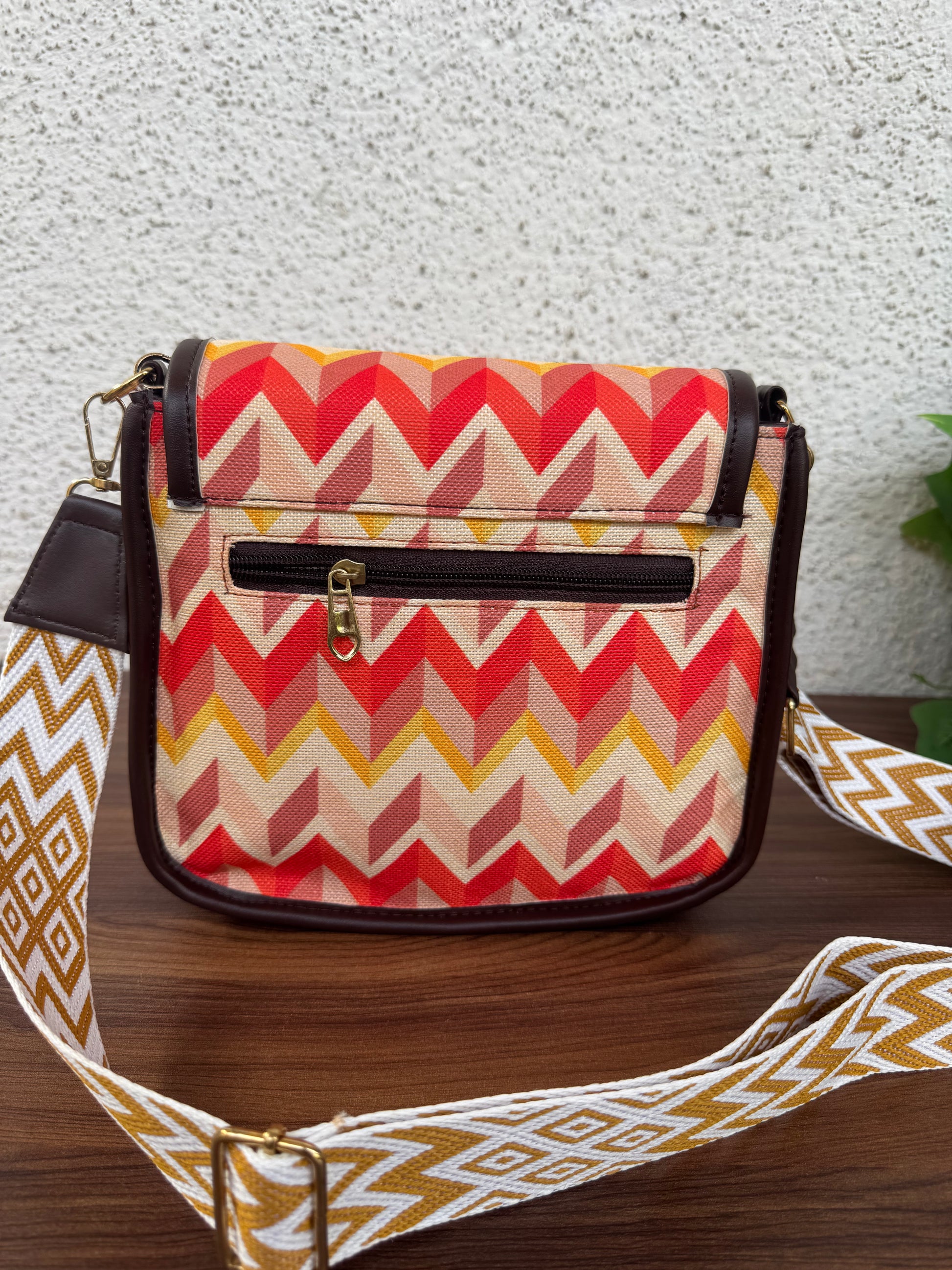 Feista - Orange Cream ZigZag - 4 Zips - pockets sling bag with Aztec Belt