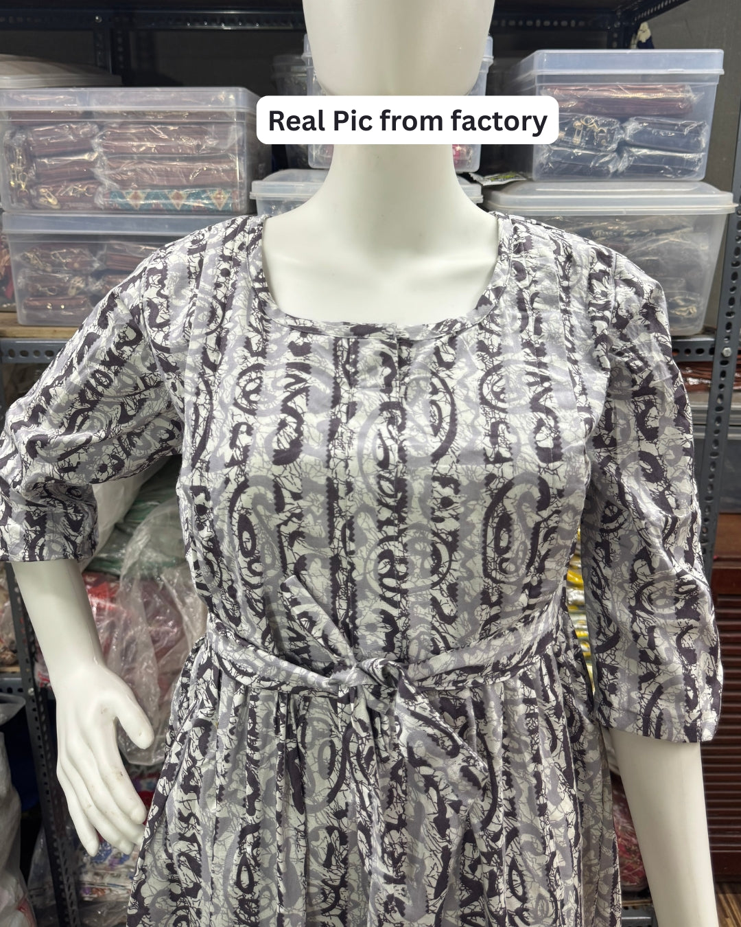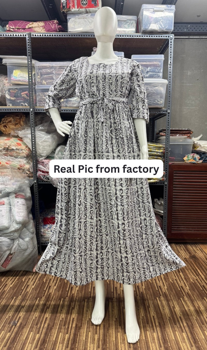 Grey Keri - Maternity Kurti with Feeding Zips - Cotton Flex - Thicker Fabric