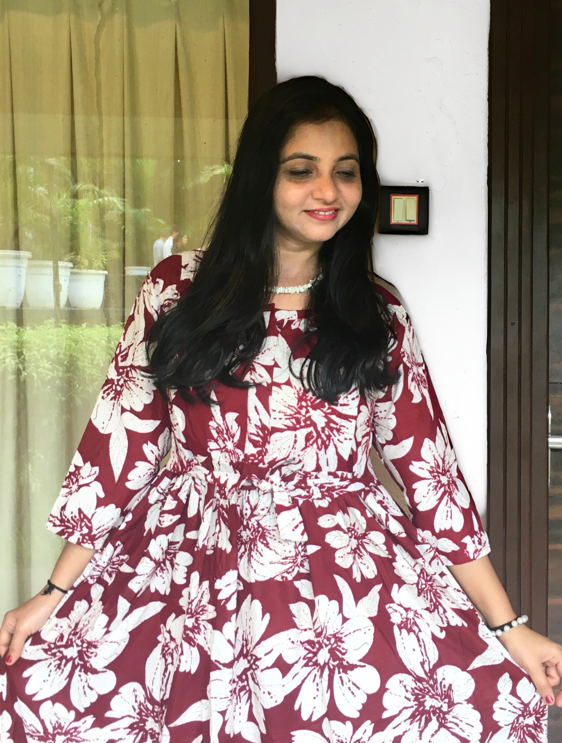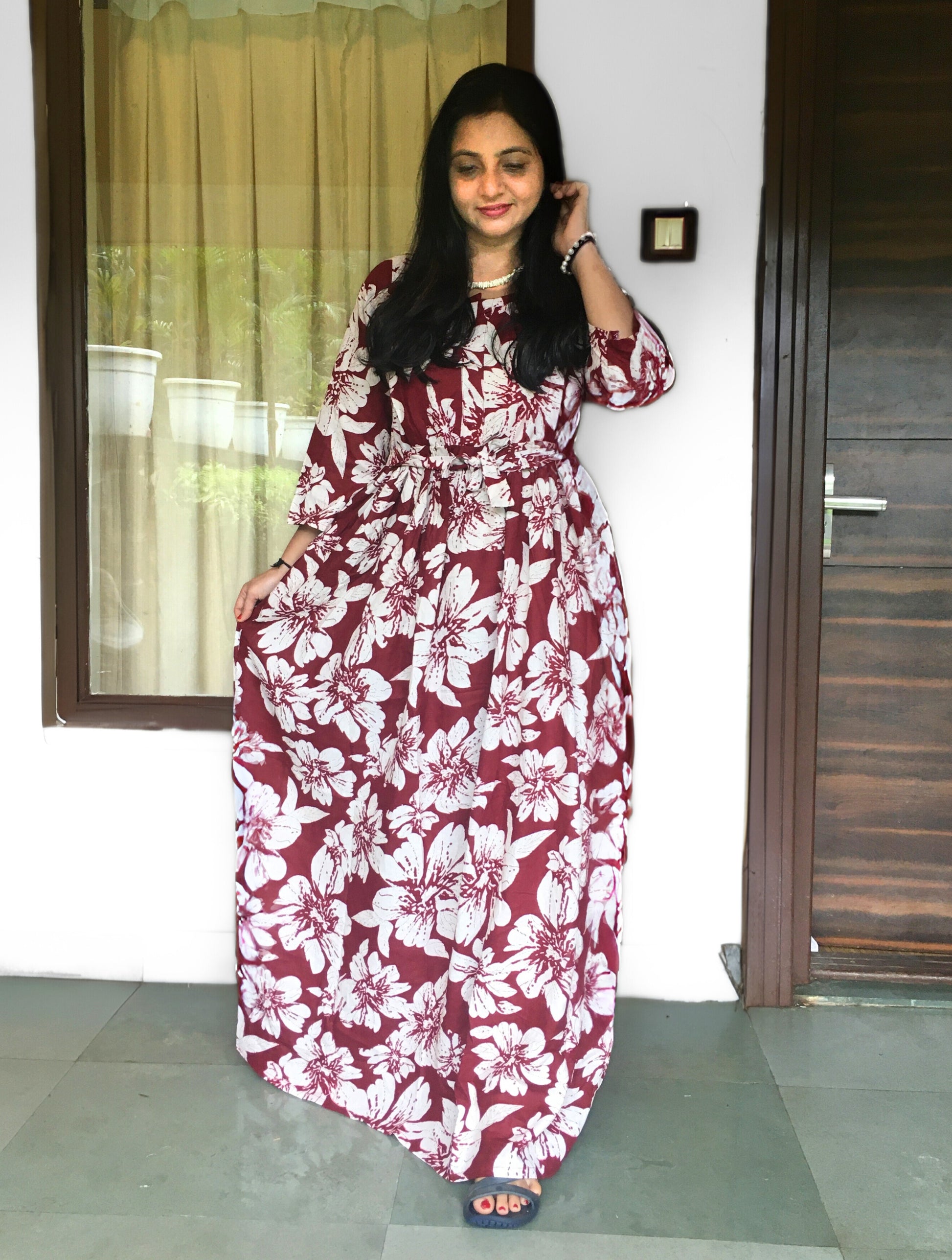 Hibiscus - Maroon - Maternity Kurti with Feeding Zips - Cotton Flex - Thicker Fabric