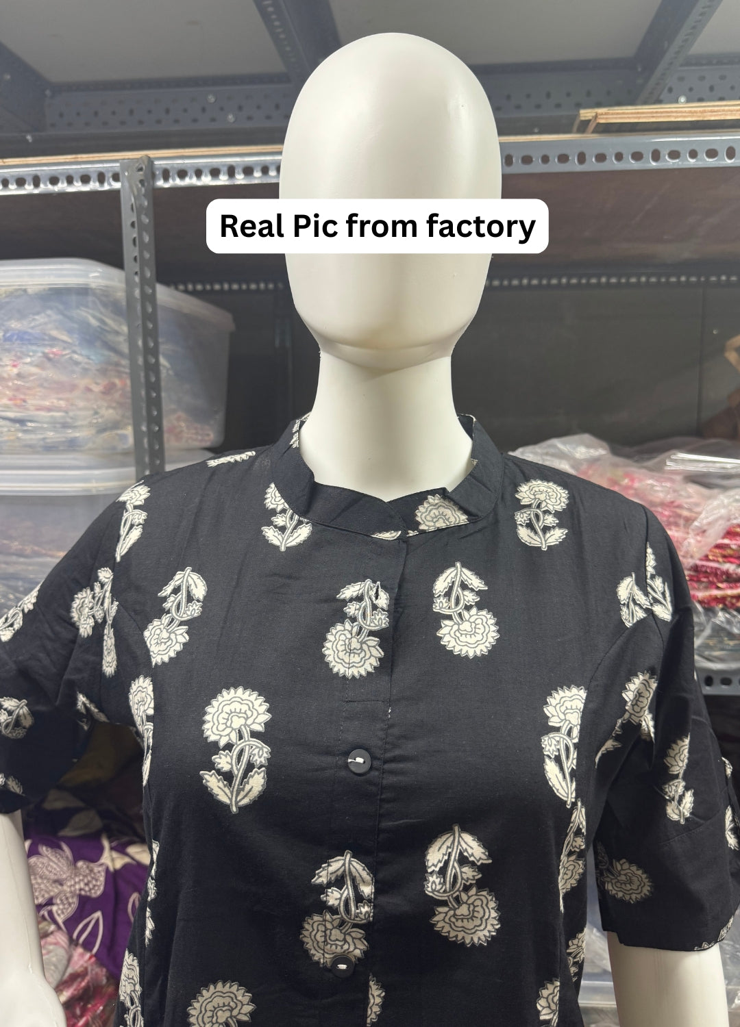 Knee Length - Black Flower - Cord Set - Pure Cotton