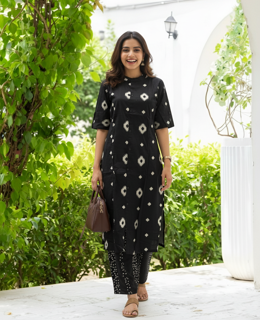 Knee Length - Black Square - Cord Set - Pure Cotton