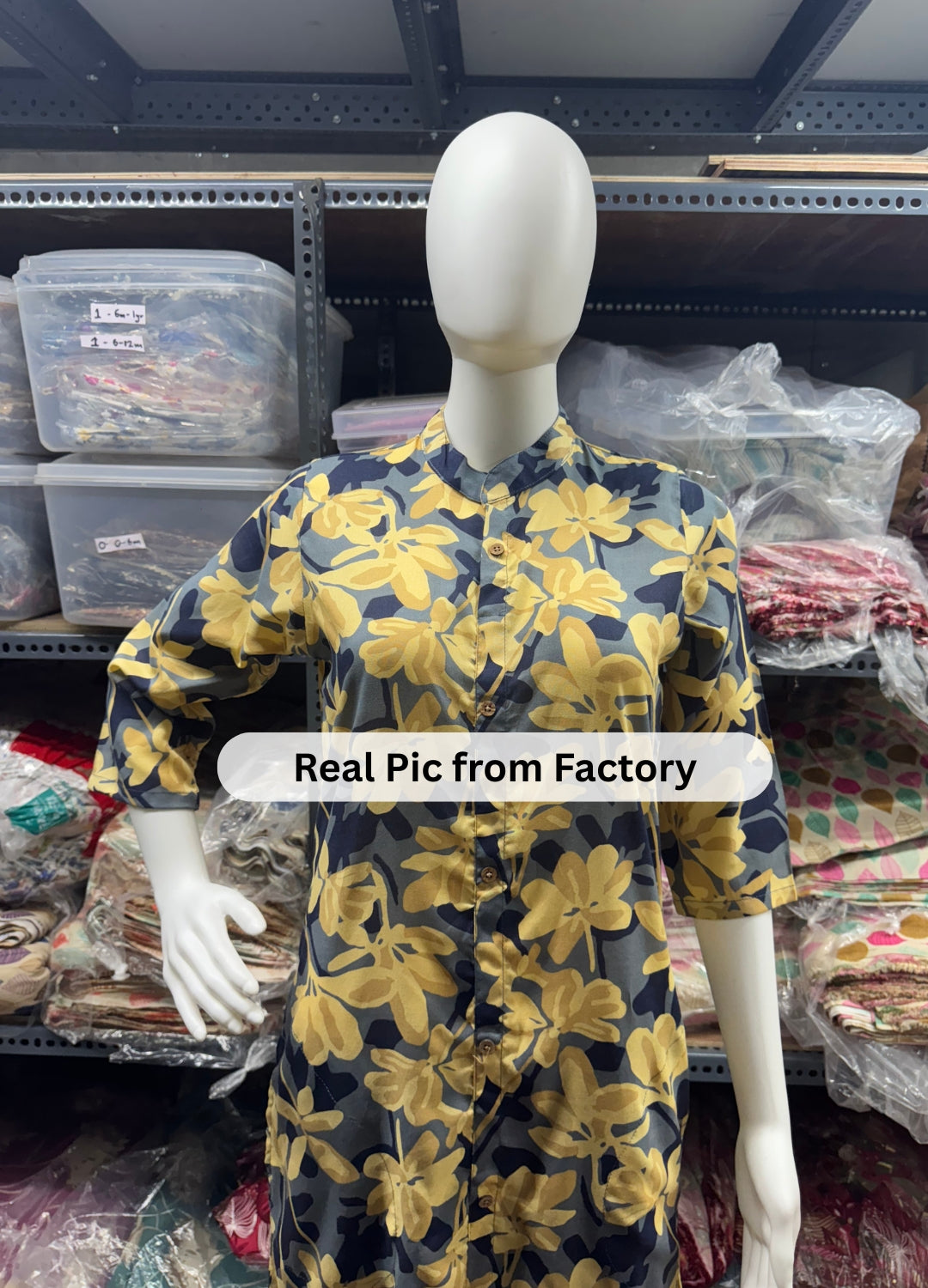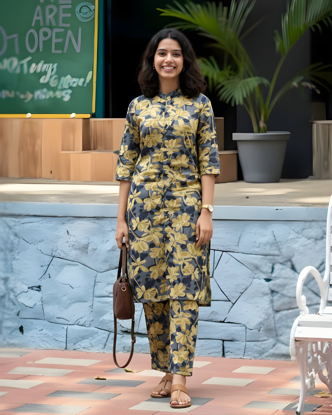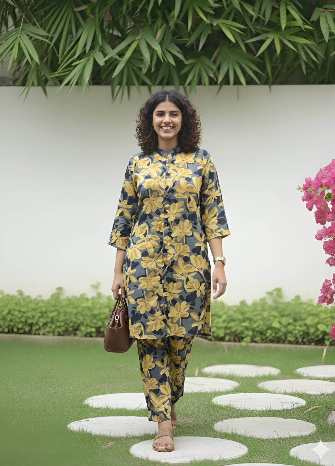 Knee Length - Blue Cream Jasmine - Cord Sets - Soft Rayon