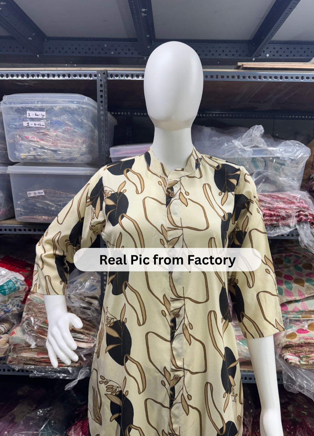 Knee Length - Off White Black Flower - Cord Sets - Soft Rayon