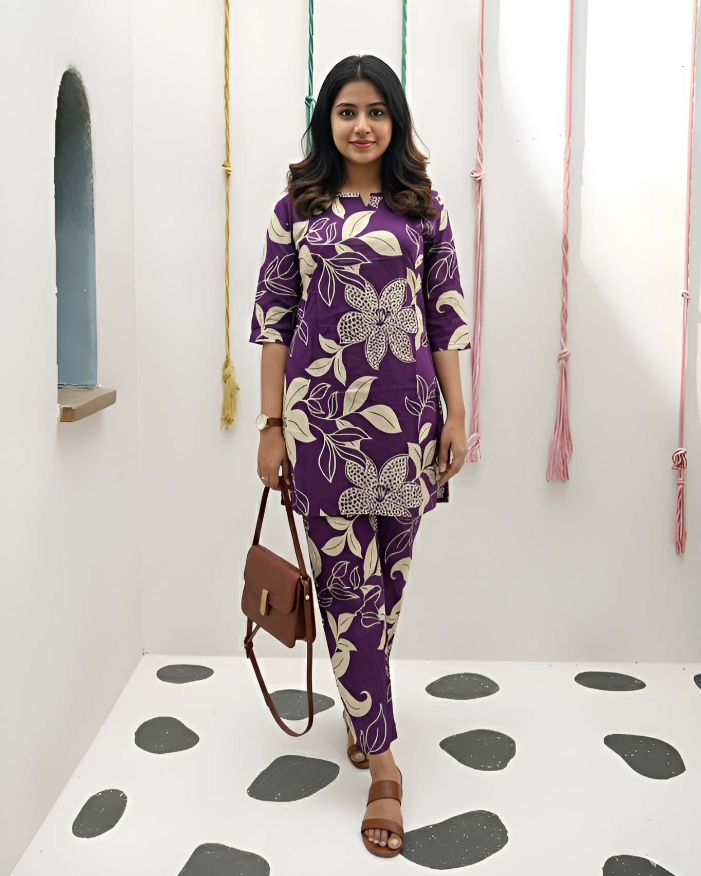 Lily Flower - Purple - Cord Set - Pure Cotton