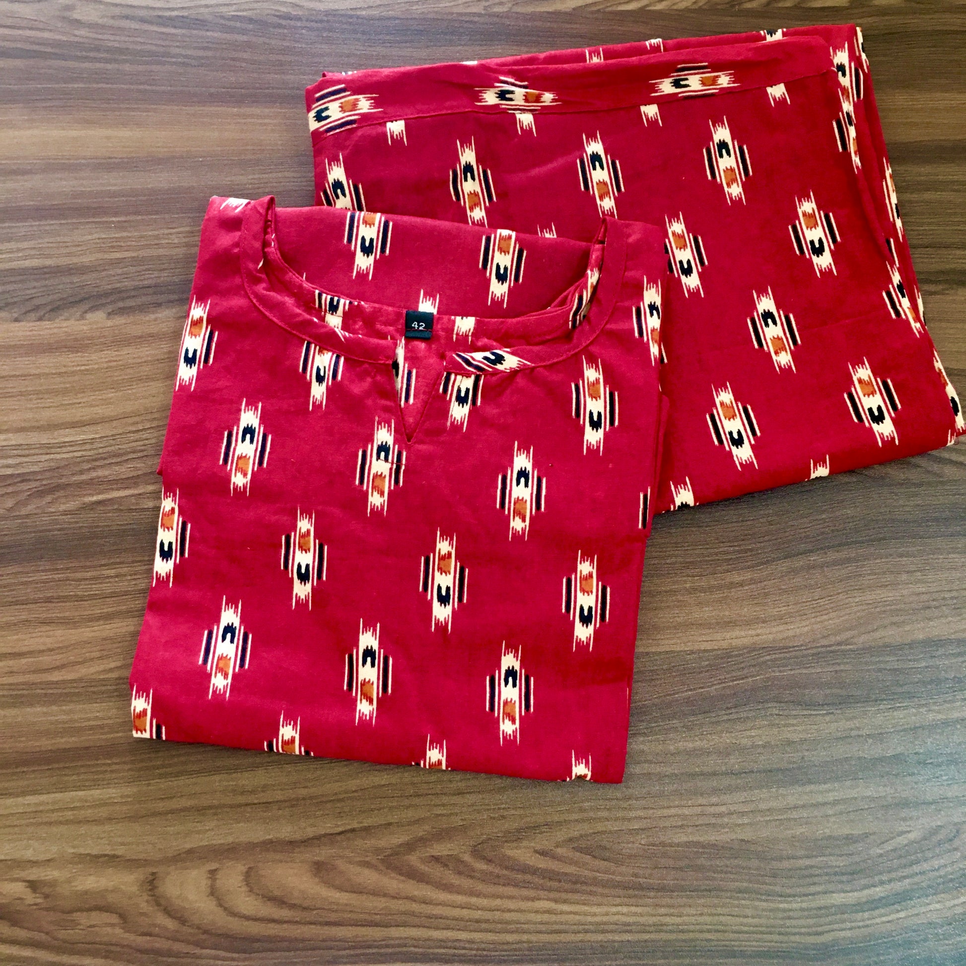 Maroon Black Ajrakh - Cord Set - Pure Cotton